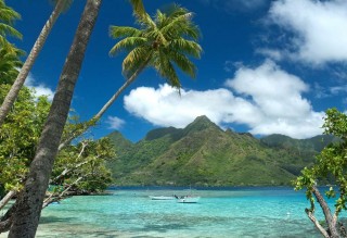 The Star Flyer anchored in Oponohu Bay beneath the green crags of the mountains. I arrived on shore by our red zodiac to spend my last day on the shores of this beautiful island. The palm trees lined the bay and small fishing boats were anchored in the shallows. I could see my ship across the bay. I could almost image it being H.M.S. Bounty or Captain Cook's Endeavour anchored there. The warm wind swayed the palms as I wandered the shoreline with my camera. I loved it when I found palm trees sticking out over the water.