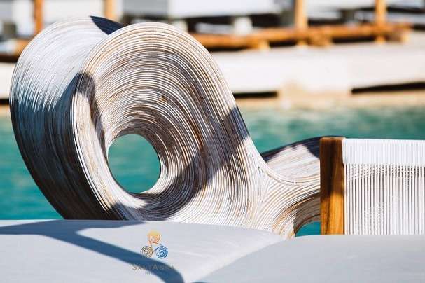 The multi-million dollar project is located on Paranga Beach on the southern coast of the island, keeping it well protected from Mykonos's legendary gusty winds.