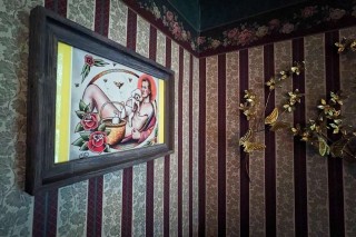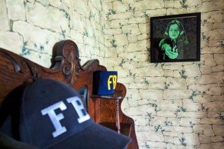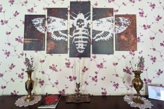 The house has a full kitchen, complete with a fava beans poster. Throughout the house the décor is all Silence of the Lambs themed, and it is amazingly tasteful. Each room is decorated with unique items—from mantel decorations to original artwork—and stuffed Precious dogs are sitting throughout the house.