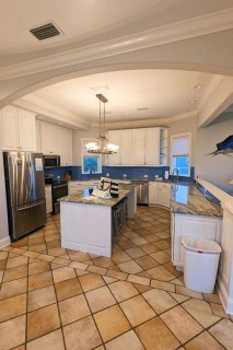 Heaven by the Sea sleeps 12 with five bedrooms and a trundle bed. The youngsters can share a double bunk bed room. The top floor houses a Queen-size suite with private balcony and impressive views. All floors can be accessed with the house elevator. The house is pet friendly.