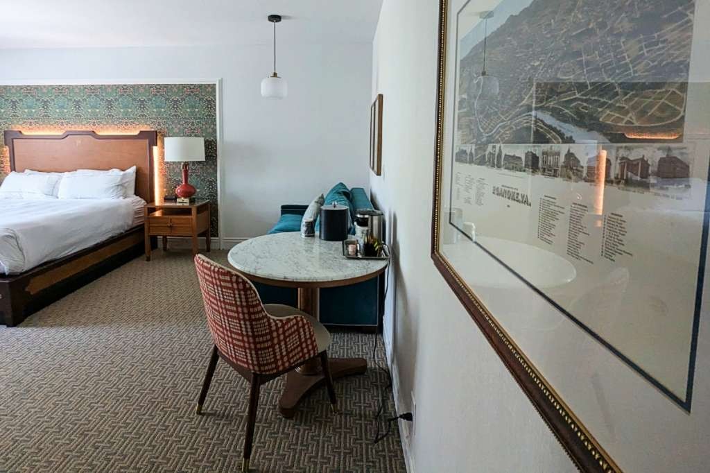 Hotel Roanoke offers guestrooms and suites. A newly created wellness floor features allergy-friendly rooms maintained by state-of-the-art filtration and special mattresses and pillows. I stayed in a standard King Bed with a view of the courtyard. Upgraded views include outdoor patios on the ground floor and deluxe corner rooms. King premium rooms feature a four-post bed and a large room with desk, chair, and loveseat. Junior suites come in king, queen, or twin-double sizes and feature an oversized chair with ottoman in a large room. The grandest accommodation is the Governor Suite, a 1,680 sq. ft. penthouse with a fireplace in the living room, dining room and kitchenette, and a rooftop terrace.