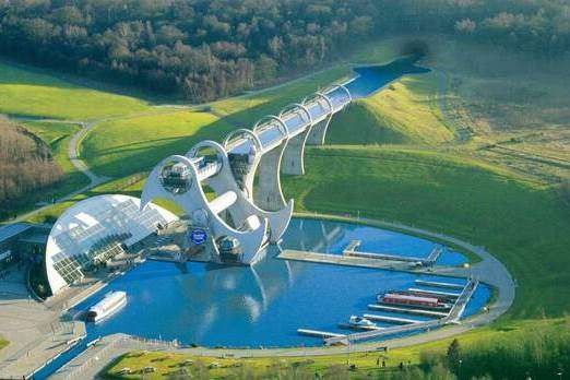 It is the world's first and only rotating boat lift, standing at a height of 35 metres, and moves boats between the Union Canal and Forth & Clyde Canal, replacing a flight of 11 locks dismantled in 1933.