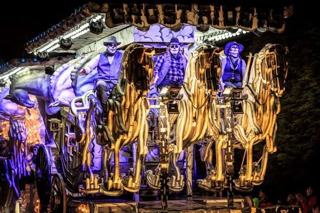 These will be lit by thousands of light bulbs, with hydraulically moving parts and musical support for the costumed Carnivalites on each float.