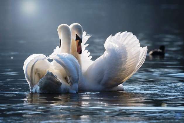 The swans stood their ground and young dog, knowing it had met its match, scampered off.