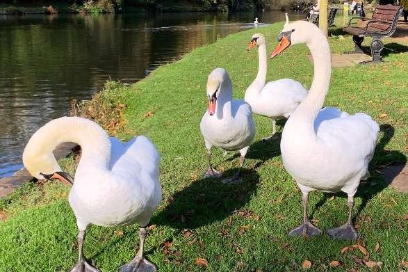We began the 1.5 mile clearly marked trail at Clopton bridge, where the infamous flocks of swans, ducks and geese gather knowing likelihood of a feed.