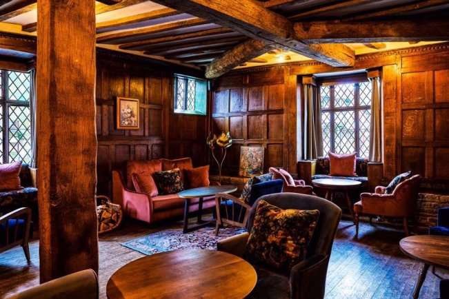 The original black and white, half-timber and slanted windows of its Tudor period have been maintained and merged into an excellent boutique hotel.