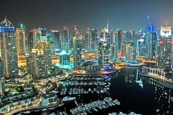 An awe-inspiring view of Dubai's unbelievable skyline, including the Burj Khalifa.