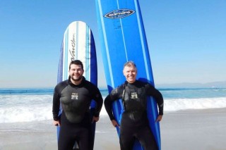 In keeping with the recreational vibe, the Westin Los Angeles Airport, the nearby hotel we're staying at, has a surf concierge who hooked us up with Wyatt at Campsurf.