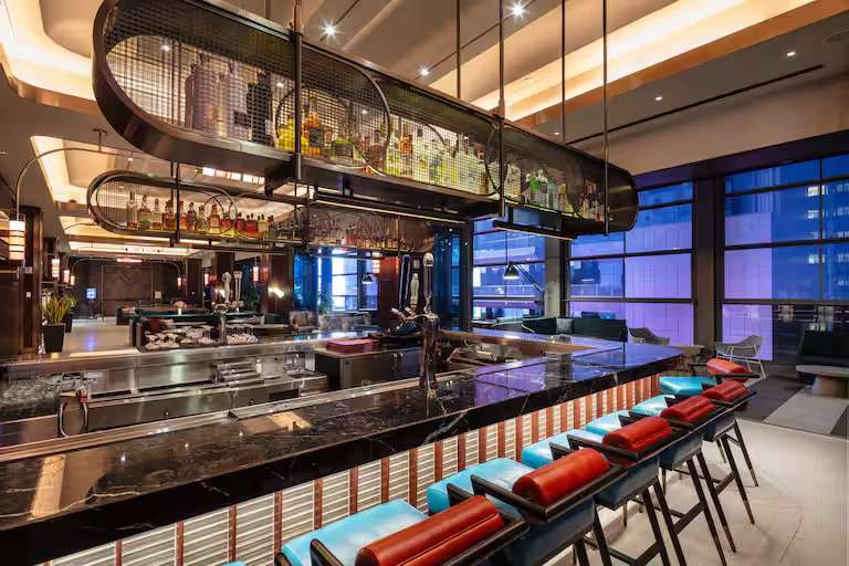 MB: Our fitness center is thoughtfully supplied with modern equipment, and our in-room Power Up zones offer organized, functional spaces for getting ready or working on the go. Highball's grab-and-go concept and energizing atmosphere support guests looking to stay aligned with their routines while exploring the city.
