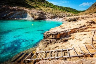 Cala Pi is a protected beach lying between cliffs with fine, golden sand and turquoise water.