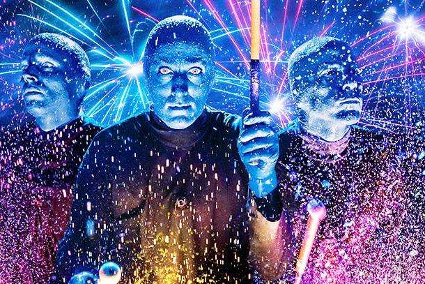 Performances mix art, music, comedy and state-of-the-art technology with the three bald and blue men backed by a rock band.