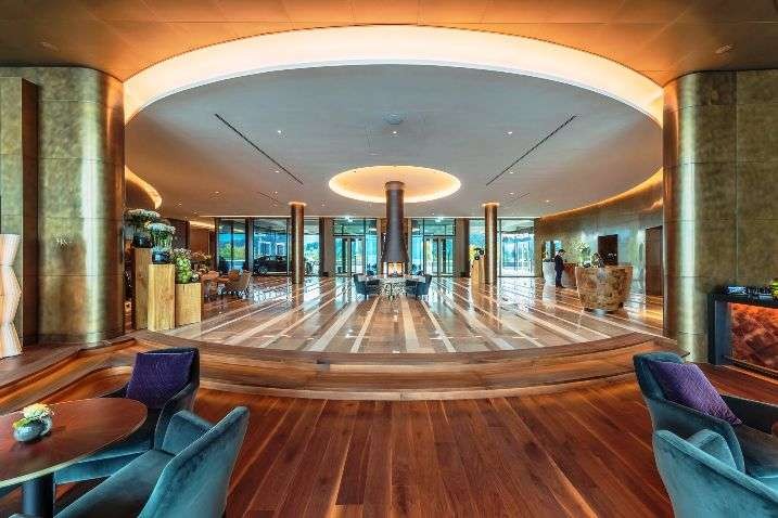 Of the four hotels at the resort, the contemporary Bürgenstock Hotel has 102 rooms and suites, a restaurant, alpine spa, lobby bar, wine cellar and cigar lounge.