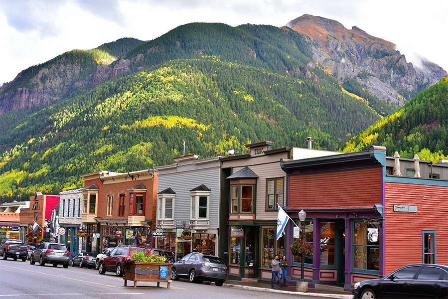 It sits in a box canyon in the San Juan Mountains. One main street divides the old western buildings of the town and makes for a pleasant stroll as you look at the surrounding mountains reflecting the late afternoon sun. During the fall the sidewalks roll up early during the week so arrive by early afternoon to enjoy this earthy western town.