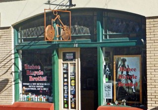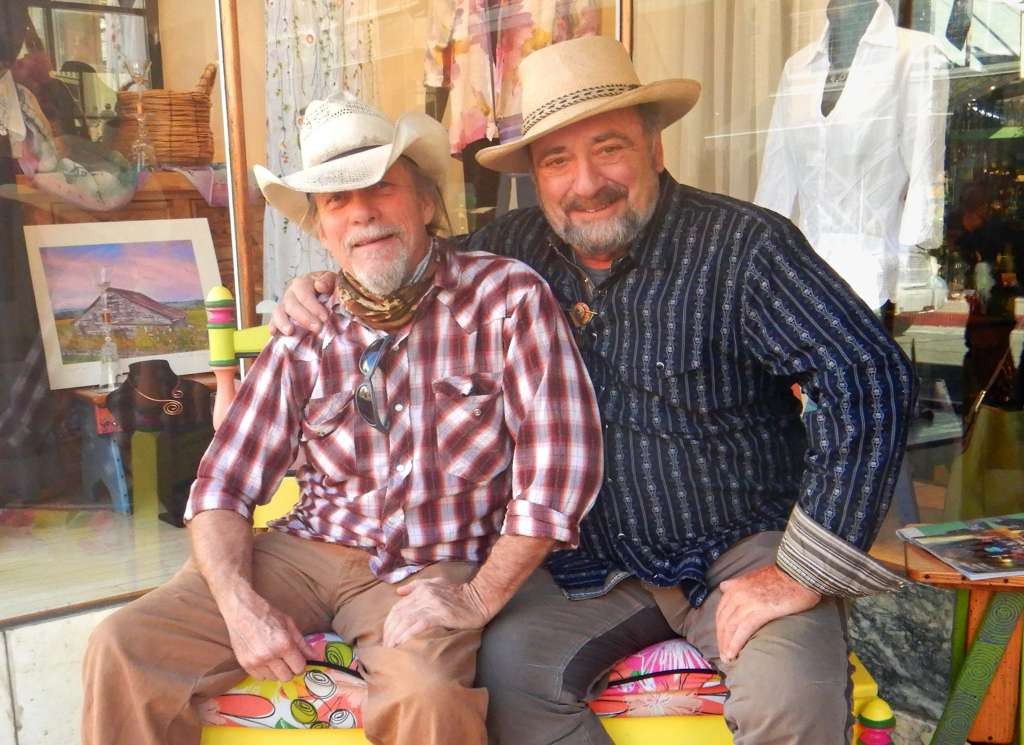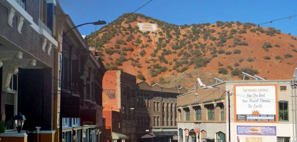 Bisbee is all about the mining history of the area.Even the ballpark was built to allow miners to have recreation on their time off from digging Copper. The quaint downtown has narrow streets and interesting shops and people.One bicycle shop is called the Bisbee Bicycle Bordello.A big B in white sits atop the high hill above the town announcing the town below. Bisbee is a very walkable town with most sites, stores, and restaurants close by.I ran into two store owners sitting on a bench outside their establishments. I was drawn to their period clothing and they happily posed for my camera.Bisbee is full of such characters during the Copper City Classic.