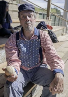 The Lemon Peel ball is a softer ball with a leather cover and has a classic double X stitching.It is very durable but does not create a "crack" but more like a "thunk" when hit hard by a Striker.A Colorado All Star poses with one for me as I wandered around the grandstands looking for good views of the field.