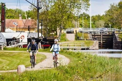 A significant portion of the trail runs along a car-free towpath past lakes, historic locks and charming canal-side towns such as Töreboda, Karlsborg, and Motala.
