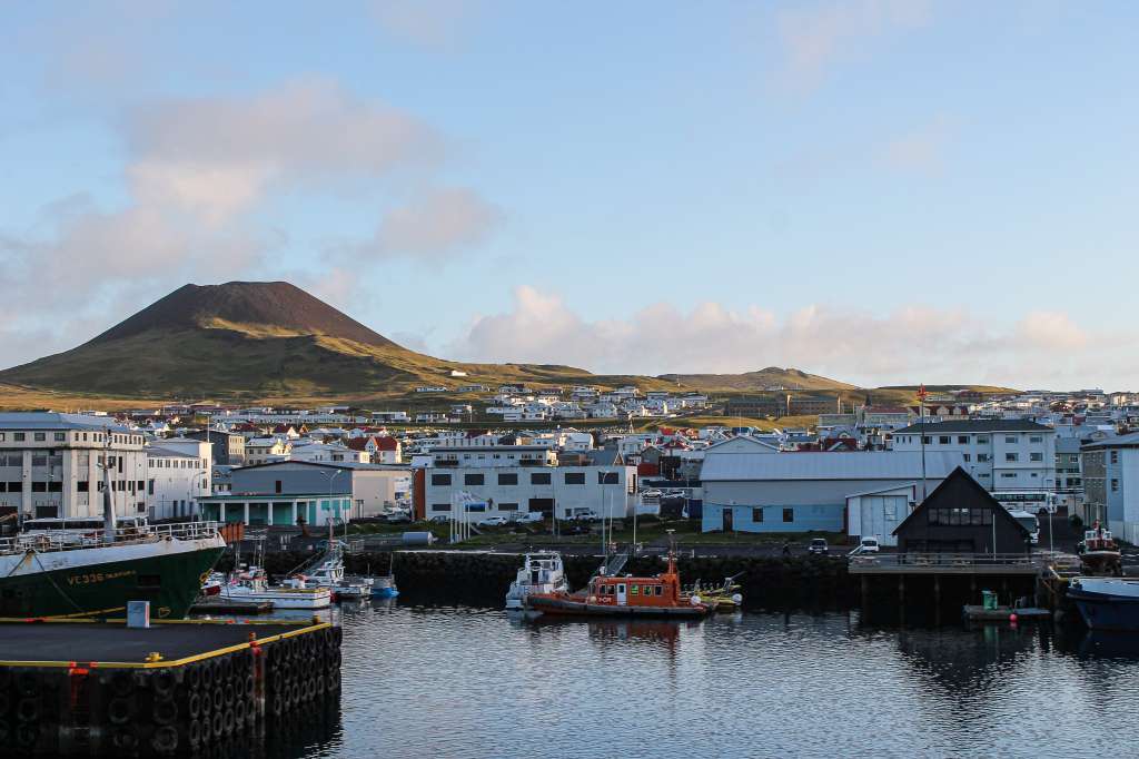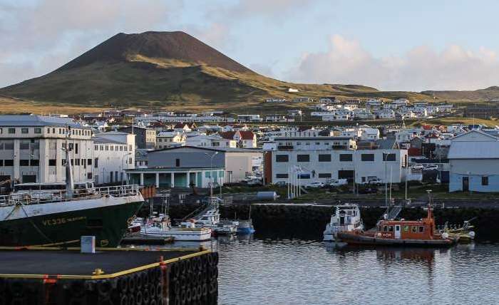 The sight of Vestmannaeyjar, the islands' "capital", comes almost as a surprise after the boat circumvents an umpteenth craggy rock. An unexpectedly large, neat and modern-looking harbour, reputedly, the best in the south of Iceland, nestles at the foot of the Helgafell mountain, officially renamed Eldfell – the Fire Mountain - by the Icelandic Place Names Committee after the 1973 eruption. It looks as if the harbour had been there forever, whereas in fact a large chunk of it is ten years younger than even Surtsey and was added to the island's territory as a direct result of the eruption, when about 300 million cubic yards of lava and 26 million cubic yards of tephra were generously deposited on Heymayey.
