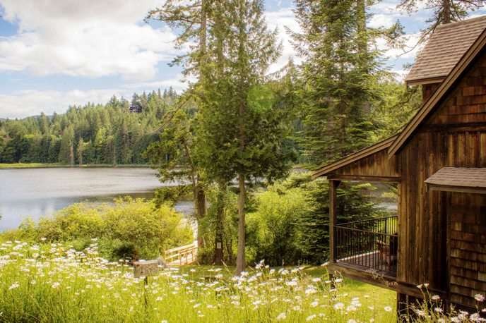The 50 West Coast weathered cedar-style cottages in the development are for sale for prices ranging from $379,000 to $650,000, but there are enough in the rental pool that you can also book them nightly from $240.