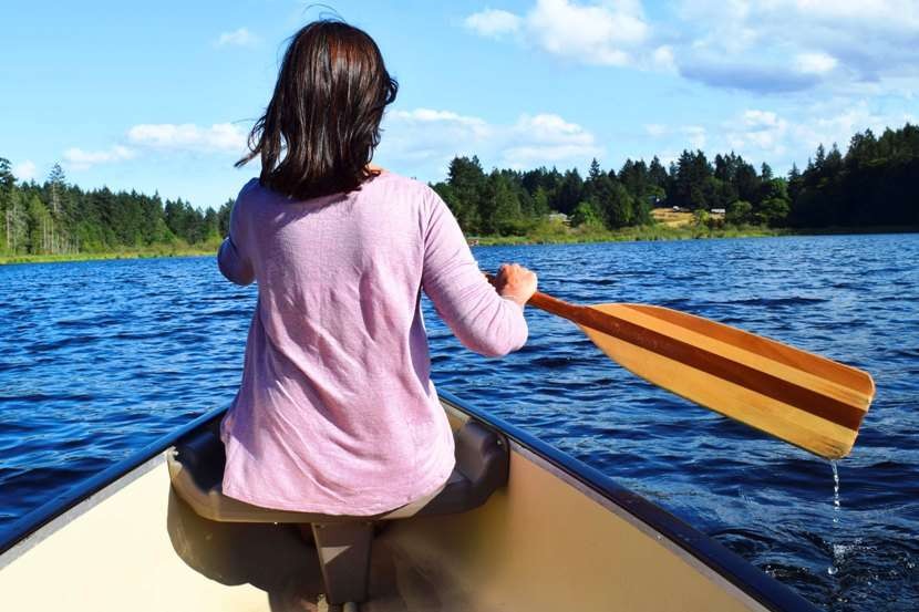 And we canoe on Bullock Lake in front of our serene rented accommodation at The Cottages on Salt Spring Island.