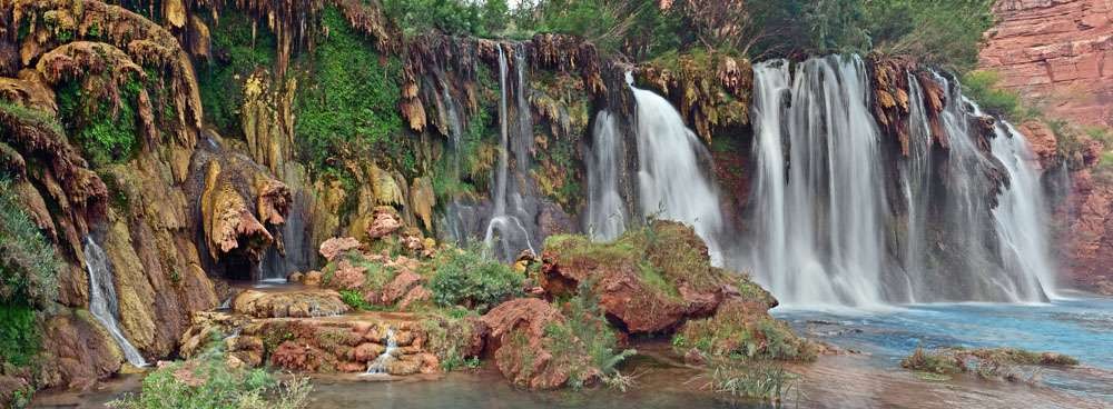 Havasupai (The land of blue green waters) is a land of red rock canyons, tall waterfalls and blue green pools. It surrounds one of the remotest villages in the continental United States on the eastern end of the Grand Canyon in Arizona. You can only get to it three ways.You can hike the 8 miles from the Rim, ride a horse, or fly in a helicopter. No cars allowed on the Havasupai Reservation.