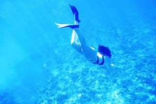 The water is warm and clear as clear, with a coral reef five metres below teeming with tropical fish – yellow tangs, triggerfish and surgeonfish.
