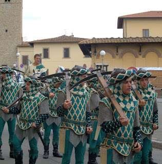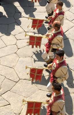 This is a colorful display of rivalry. Participants represent four quadrants of the town dress in respective colors of green/red, yellow/crimson, white/green, yellow/blue. Each team parades through the town with much regalia and fanfare culminating in the Knight's Tournament in the Piazza Grande.