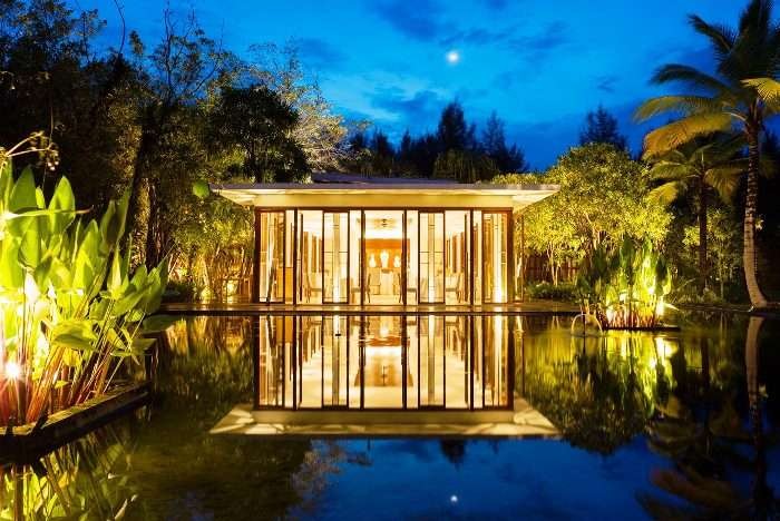 Designed in a contemporary Asian style, the five-star resort's 56 deluxe residences are sited within ten acres of tropical grounds leading directly onto the beachfront.