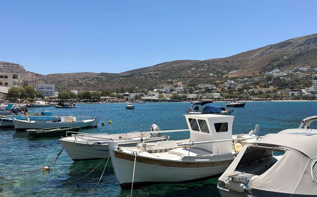 Kini Beach (our favourite beach on the island) is an enclaved beach with soft, white sandy beaches. Several bars and tavernas are located right on the ocean's edge. This is, for us, the most picturesque beach on Syros, with its small marina. From Kini Beach, you can take a boat cruise to some of the secluded beaches in the north. The best part is that it is within walking distance from Pino Di Lotto Boutique Hotel, where we stayed. There is no better place on the island to enjoy dinner than at Kini Beach, with its exquisite sunset views.