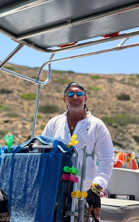 A boat cruise around Syros is a must with Perla Cruises. Our lovely host, Pino Di Lotto, made all the arrangements for us to be guests of Skipper Nikos on Perla 1. Our trip started from Kini dock, past some of the most incredible rock formations along the shoreline. Perla 1 is a lovely, comfortable boat with all the necessary safety measures in place. The total excursion lasts about four hours and takes guests to the most secluded and pristine beaches on the northwestern side of the island. This is one of the highlights of our stay on Syros, and we highly recommend you book a trip a few days in advance. What impressed us the most about this company is how they collaborate with people on the secluded beaches to gather their waste and have it removed by boats to the villages for safe disposal, ensuring visitors don't cause harm to the environment.