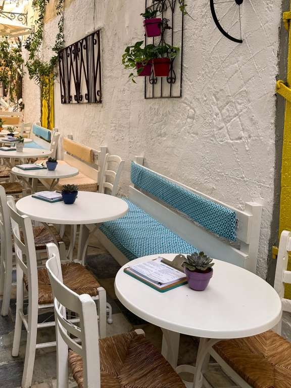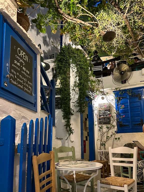 Because we loved the vibe of Kini so much, we enjoyed our last dinner on the island at Allou Yialou, which is next to our first night's restaurant, To Plakostroto. Although the setting was just as fabulous as at To Plakostroto, the meal was unfortunately not as great as the one we enjoyed the first night. Nevertheless, if you are looking for the most idyllic 'Greek' setting with a fabulous vibe, you cannot go wrong with most of the restaurants on Kini Beach.