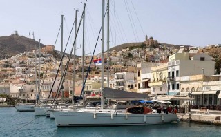 Syros lies in the centre of the Cycladic islands, slightly to the west of Tinos and Mykonos. It lies about 78 nautical miles (144km) southeast of the mainland, Athens. Because of Syros' location, the islands are ideal to include in an island-hopping holiday between the various islands in the Cyclades.