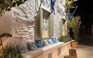 On the second evening, we enjoyed dinner at To Plakostroto, a hilltop restaurant with stunning sunset views over the Aegean Sea. The food was exceptional, and the view was even better. After our early dinner, we strolled along the small alleys of Ai Michalis in search of great photo opportunities in the many ruins. We walked until we reached St. Michael's church. It is the tiniest whitewashed traditional church against the most pristine backdrop of the Aegean Sea and the perfect sunset. For all the Instagrammers out there, this is the spot to create exceptional content. From there, we went back to our car and headed to the village of Ano Syros for an evening cocktail at Theosis. This is one of the most charming locations in Ano Syros. They have unique cocktails with typical Greek associations like Apollo, Pothos, Thlipsis, Apatheia, etc.