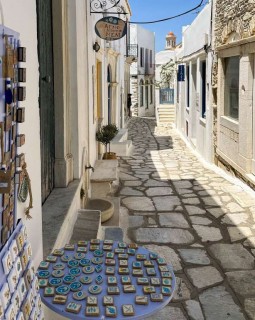The first night, Petra and I decided to wander through the village. It felt like we were caught up in a labyrinth with so many side alleys. At one point, I remember saying jokingly to Petra I hope we find our way out before the next morning. Our host, Terezdina of Pino di Lotto, had given us a location for the best cocktail bar in Ano Syros. And if you know Petra like I do, she will not stop until she finds the exact place that was suggested. It took us a while to find the place called Theosis. I must admit it was worth finding our way through the maze. This was by far one of the most special evenings we enjoyed on our entire trip to Greece. To keep me happy, Petra allowed me to wander from shop to shop to find the perfect souvenir for my 'Travelling display cupboard' at home.