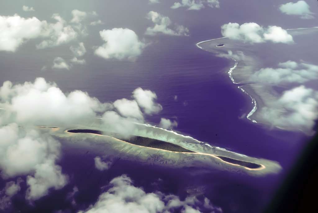 Blue lagoons and open ocean surround the landmass. A coral reef provides a perimeter to the shores. Not much past the edge of the coral, the sea drops off to a blue-black depth. I easily imagine a great white shark or giant octopus just beyond my sight.