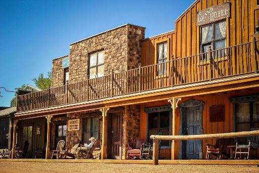 The ranch built in the image of an Old West town, with the Grand Hotel, Blacksmith's, Marshal's Office and even the Jail, with dining in Schieffelin's Restaurant, and entertainment in the Old Trappman Saloon.