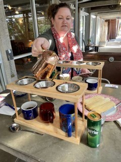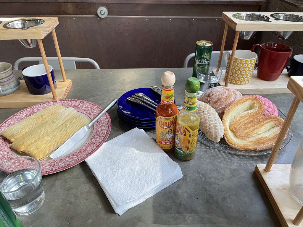 Order hot or cold premium coffee drinks along with exceptional pastries and unexpected tamales – yes, fresh tamales steamed and piping hot. The coffee is an in-house prep delight. The tamales are sourced from nearby Mexican bakery La Purisima Bakery. Try the green or red ones.