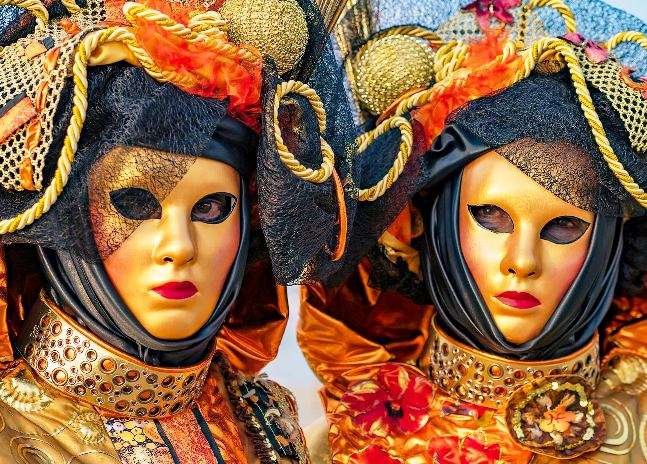 Venice during carnevale sees citizens and visitors take to the streets dressed in elaborate, fantastically masked costumes.