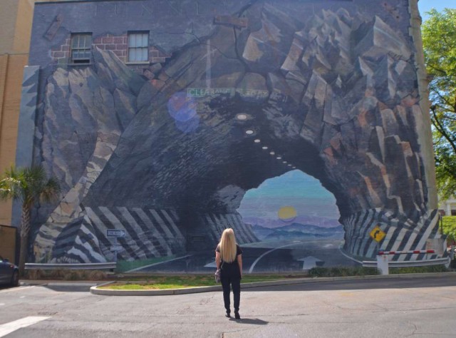 One of the most fun things to do is to explore the downtown area and see how many interesting and quirky pieces of art you can find in the alleys, plazas, and on buildings, such as "Tunnel Vision" – the trompe l'oeil (trick the eye) mural.