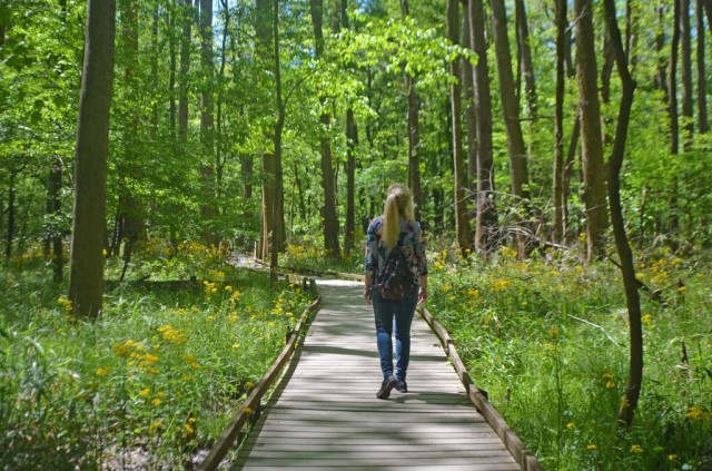 Congaree Park has an old-growth forest which is among the tallest broad-leafed forests in the world, with more 130' – 160' tall trees than any other place in Eastern North America. That's taller than old-growth forests in Japan, the Himalayas, and Europe! Visitors can hike, kayak, canoe, and fish. One of the best features is the 2.4-mile Boardwalk Loop that winds over the swamp and meanders through the tall trees, fields of wildflowers, and past lakes.