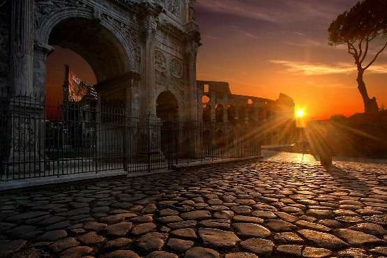 With gratitude, we gaze over Rome's multitude of monuments to the orange-popsicle sunset.