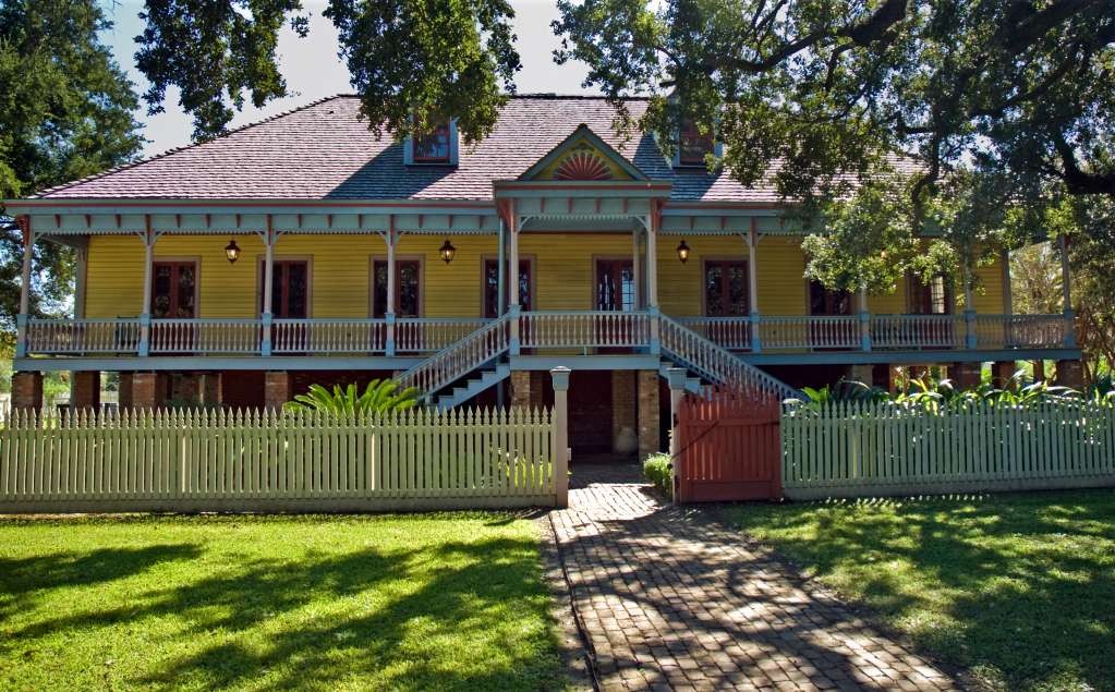 In contrast, The Laura plantations has a French Creole style "Big House" and original slave cabins. This home was built in 1805 and was also a sugarcane plantation. The single main floor sits above an open brick foundation basement. The architecture is quite different than Oak Alley. The original slave cabin held two families in a very small single room. Laura has a lot more outbuildings and you get a better understanding of a working plantation than at Oak Alley.