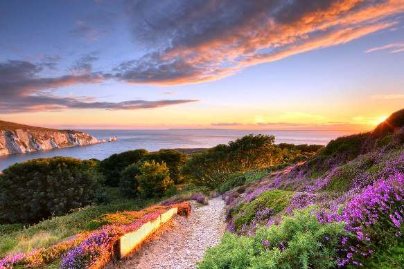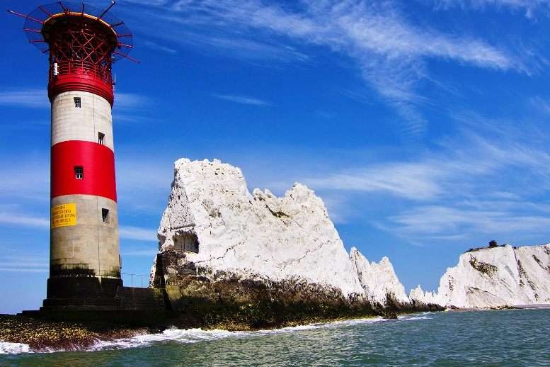 On the island's western point, The Needles are three huge, white chalk rocks with by a 19th-century lighthouse.