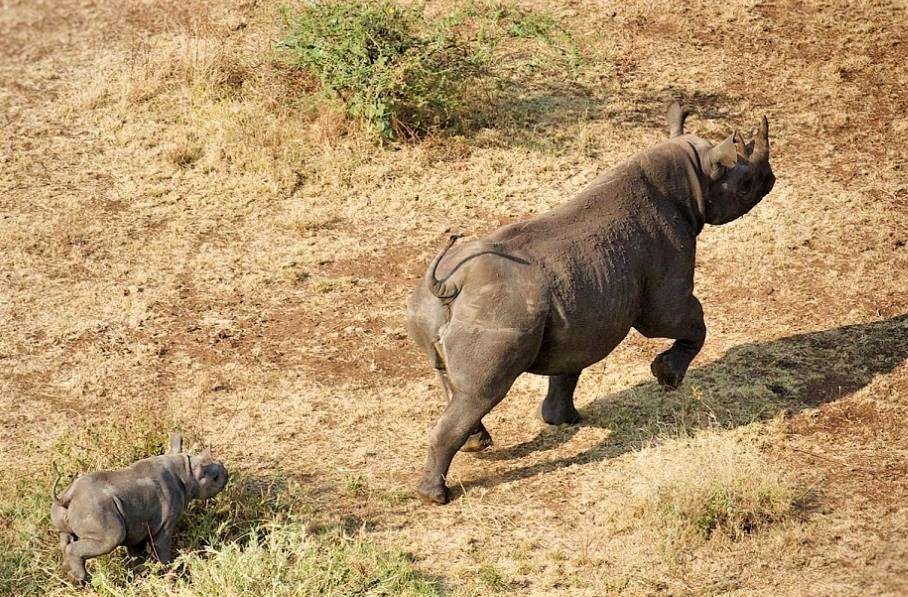 In the 1970s rampant poaching decimated numbers by 99 per cent and some animals were removed from East Africa, with the intention of saving the species and returning them to their rightful home. In 2019 nine black rhino from an out-of-range population in South Africa were shipped back to Tanzania. After a few months acclimatising in rhino bomas (enclosures), they were successfully released in November last year. Lindiwe - meaning "awaited" - one of the females relocated from South Africa, has given birth to her first calf and the pair are thriving under the watchful eye of the aerial and ground teams.