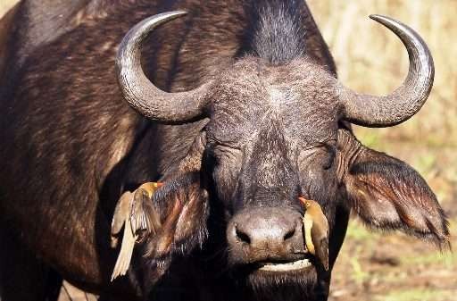 Whilst feeding on these protein rich flowers the giraffe becomes dusted with pollen on its head and neck depositing its pollen load when it moves onto the next tree".