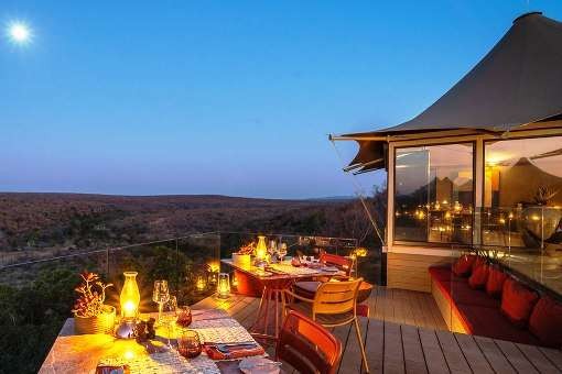 The camp lies within the 50,000-hectare, malaria-free, 'big five', Lapalala Wilderness Reserve and consists of five stilted villas, which are joined by a main lodge, all atop a 100ft cliff overlooking the winding Palala River below and the endless bush ahead.