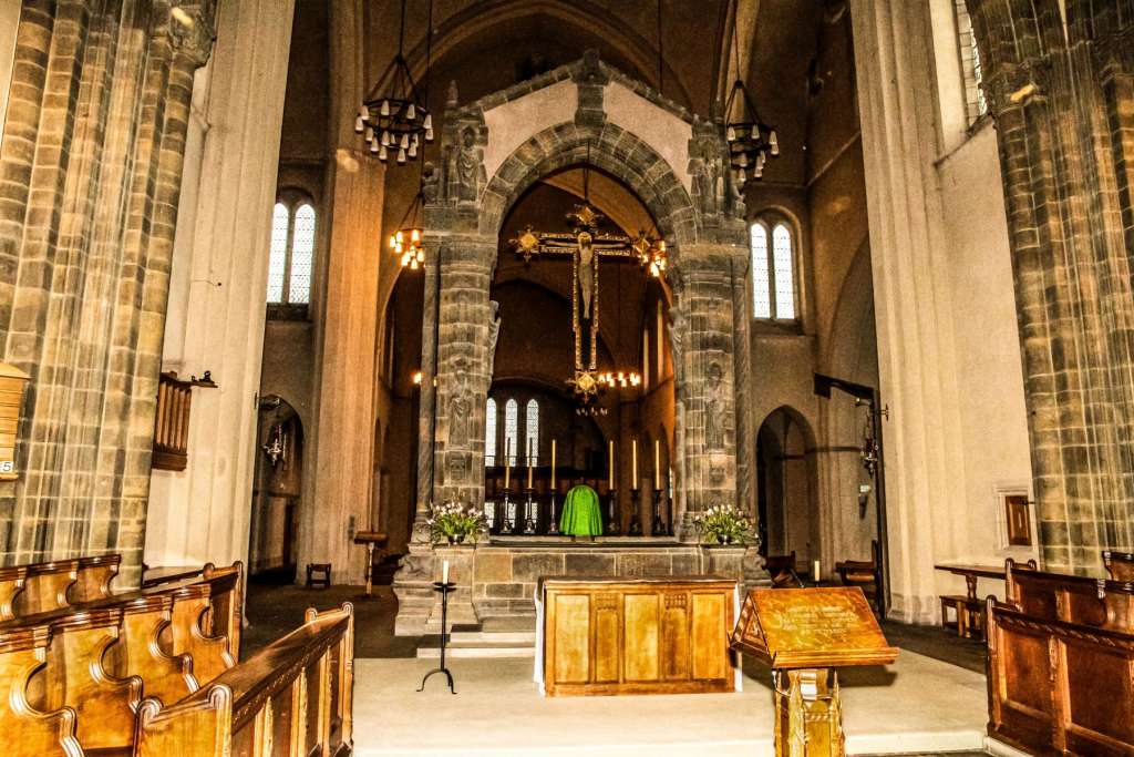 The style of the Abbey Church is a blend of Gothic and modern and has many beautiful features within its walls. Instantly catching your eye is the impressive Triumphal Arch carved from Blue Hornton stone that rises over the tabernacle, double altar and crucifix. There are many stained-glass windows, statues and smaller chapels to discover. The church plays an important part in the everyday life of the monks, and visitors are more than welcome to join them in prayers throughout the day.