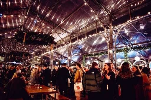 The Glass House, allows visitors to warm up with drinks, ride on the helter-skelter or take a private hire igloo.