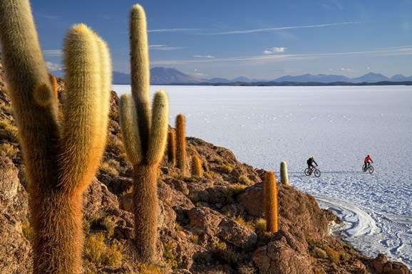 There are coloured lagoons with large populations of pink flamingos, geysers spewing hot water and steam and the Uyuni salt flats stretching 10,000 square kilometers with 32 islands between them.