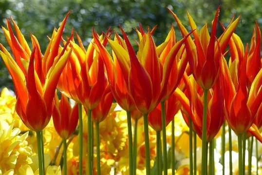 Some 1,600 varieties of bulbs are used, of which 800 varieties of tulips with shrubs and perennials also combined with bulb crops gone wild at the natural garden and in the Mill Forest.