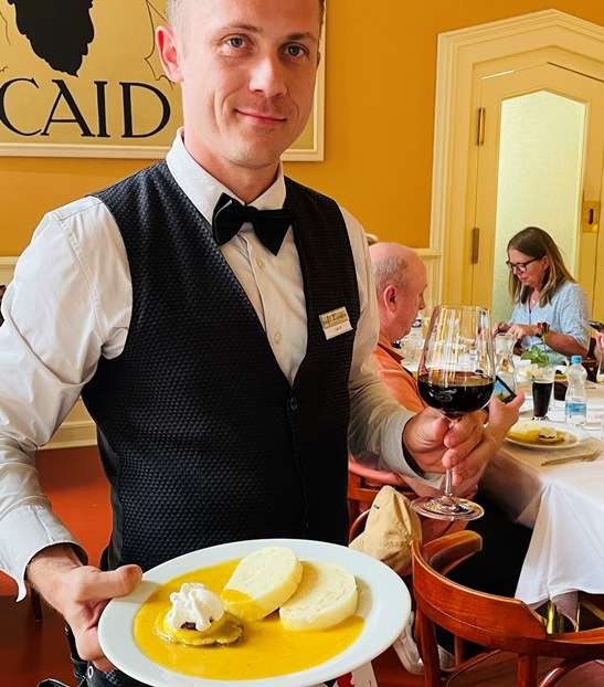 As we tuck into 'svickova' – bacon fat-injected beef tenderloin in a cream sauce – paired with Czech merlot, Zach explains Kafka was a regular at Cafe Louvre in the early 1900s, the height of cafe society.